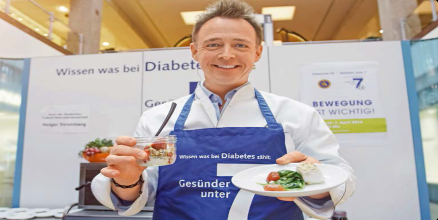 Mit dabei war in Schwerin erstmals Holger Stromberg, Koch der deutschen Fußball-Nationalmannschaft. (Abb. 1) „Diabetes ist eine Volkskrankheit mit über siebeneinhalb Millionen Betroffenen, Tendenz erschreckenderweise steigend“, betonte er. „Ich möchte mein Know-how und meine Erfahrung einsetzen, um den Menschen zu vermitteln und ihnen dabei zu helfen, durch entsprechende Prävention zu verhindern, an Diabetes zu erkranken.“ Stromberg weiter: „Vor allem möchte ich den bereits erkrankten Menschen mit Diabetes einen Weg aufzeigen, wie sie ihren Blutzuckerspiegel mit Genuss und Geschmack unter Kontrolle halten können.“