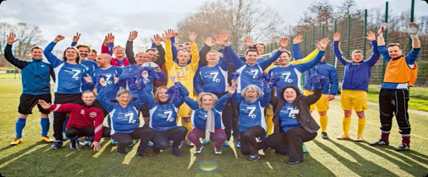 Ein Signal für mehr Spaß mit Sport setzte das „Gesünder unter 7“-Team am Abend bei einem Fußballspiel gegen den Schweriner SC: Eine Auswahl im Alter von 30 bis 75 Jahren trat mutig gegen die routinierten Vereinssportler an. (Abb. 2) Mit dabei war Daniel Schnelting, dreifacher Deutscher Meister im 200-m-Sprint und selbst Typ-1-Diabetiker. „Mit gesunder Ernährung und viel Bewegung lassen sich die Blutzuckerwerte senken, die Leistungsfähigkeit steigern und Folgeerkrankungen vermeiden“, betonte er.