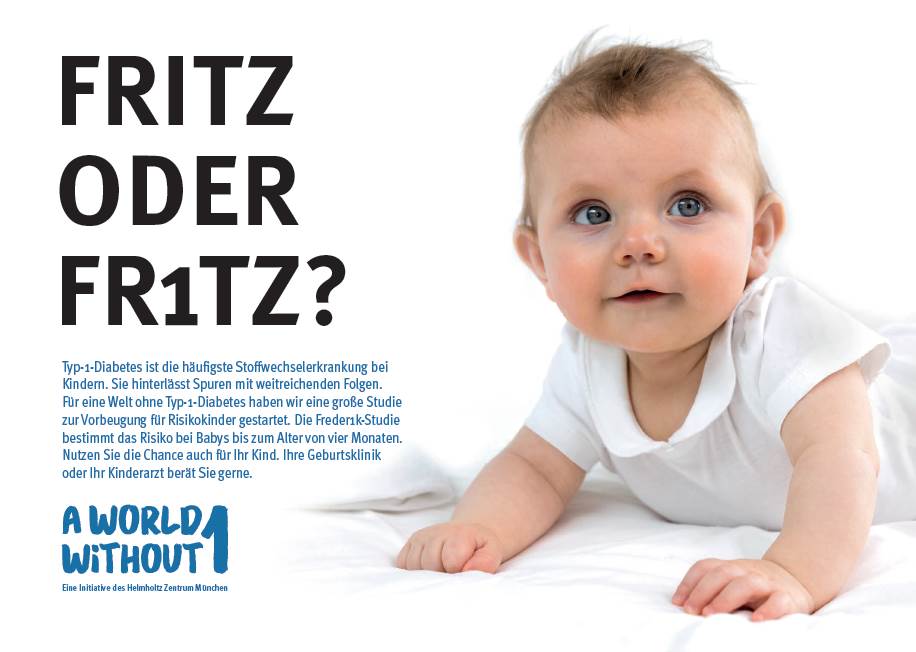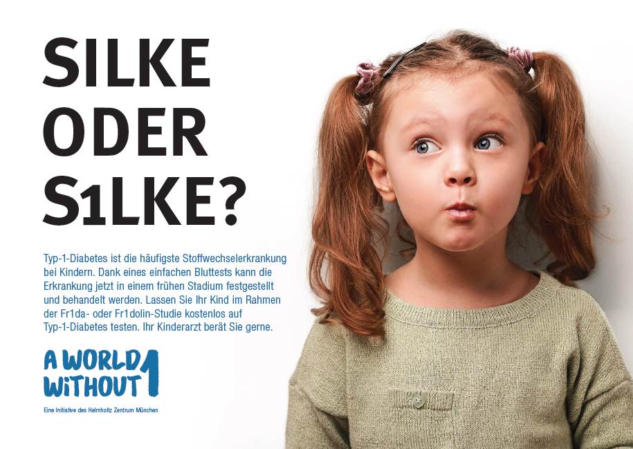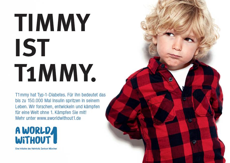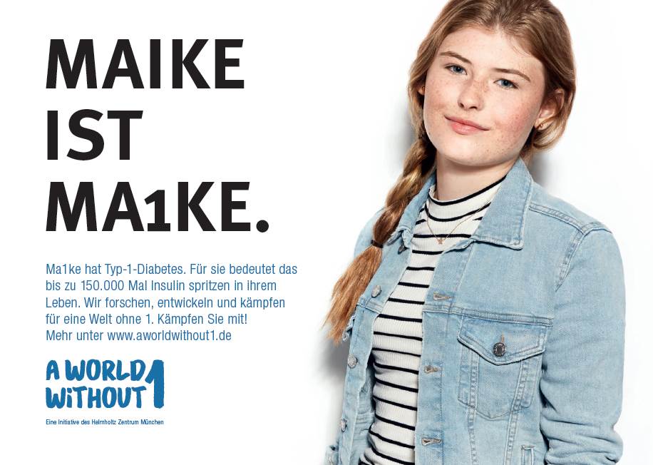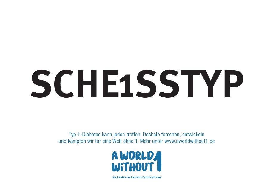 Mit dem provokanten Wortspiel „SCHE1SSTYP“ als erstem Motiv wurde am heutigen Dienstag ( 22. Januar 2019) die Diabetes-Kampagne „A World Without 1“ gestartet. Damit wollen Forscher möglichst viele Unterstützer für ihre Arbeit zur Früherkennung und Verhinderung des Typ-1-Diabetes gewinnen und gehen daher nun bewusst an die breite Öffentlichkeit.