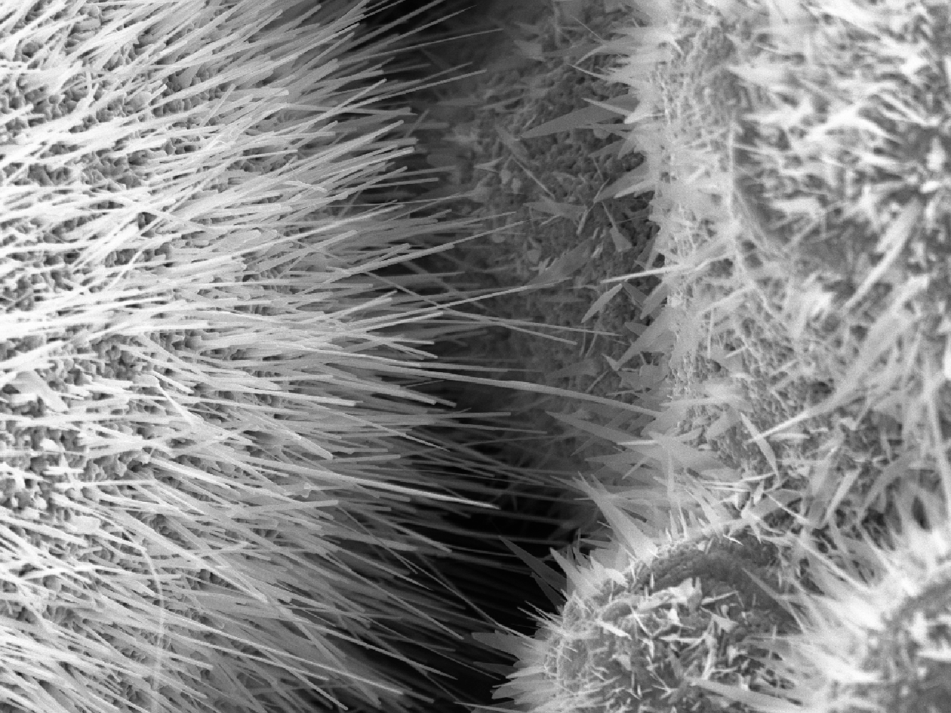 Unter einem hochauflösenden Elektronenmikroskop wird die besondere Oberfläche der neuen Sensoren sichtbar: In einem Dickicht aus zahlreichen Spitzen von nur etwa 20 Nanometern Durchmesser verfangen sich Moleküle von Gasen wie zum Beispiel Aceton besonders leicht. Die Spitzen vergrößern die Oberfläche des Sensors und sorgen so für seine hohe Empfindlichkeit.