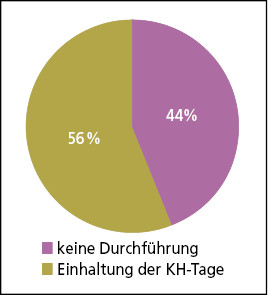 Der Anteil der Patienten, die zusätzlich zum Insulin eine Tripletherapie bekamen, stieg auf 50% (siehe Grafik 2). Spannend ist die zur Stoffwechselkontrolle eingesetzte Insulinmenge. Hier konnte innerhalb von 12 Monaten eine signifikante (p<0,0001) Reduktion von 167 IE (± 95) auf 133 IE (± 57) erreicht werden (siehe Grafik 3). Über die Hälfte der Patienten führte ein Jahr nach Entlassung aus dem Krankenhaus ambulant noch Kohlenhydrattage durch (siehe Grafik 4).