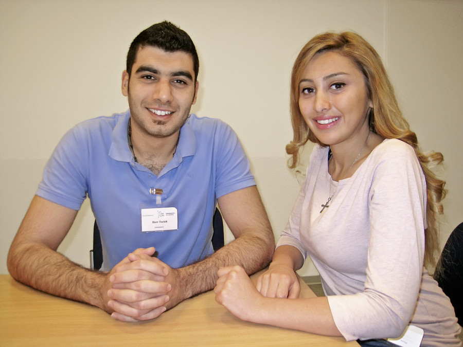 Dunyamaliyeva: Ich hatte in der Schule Englisch als Fremdsprache. Als ich hier vor 1½ Jahren hergekommen bin, konnte ich gar kein deutsch, das habe ich erst hier gelernt.