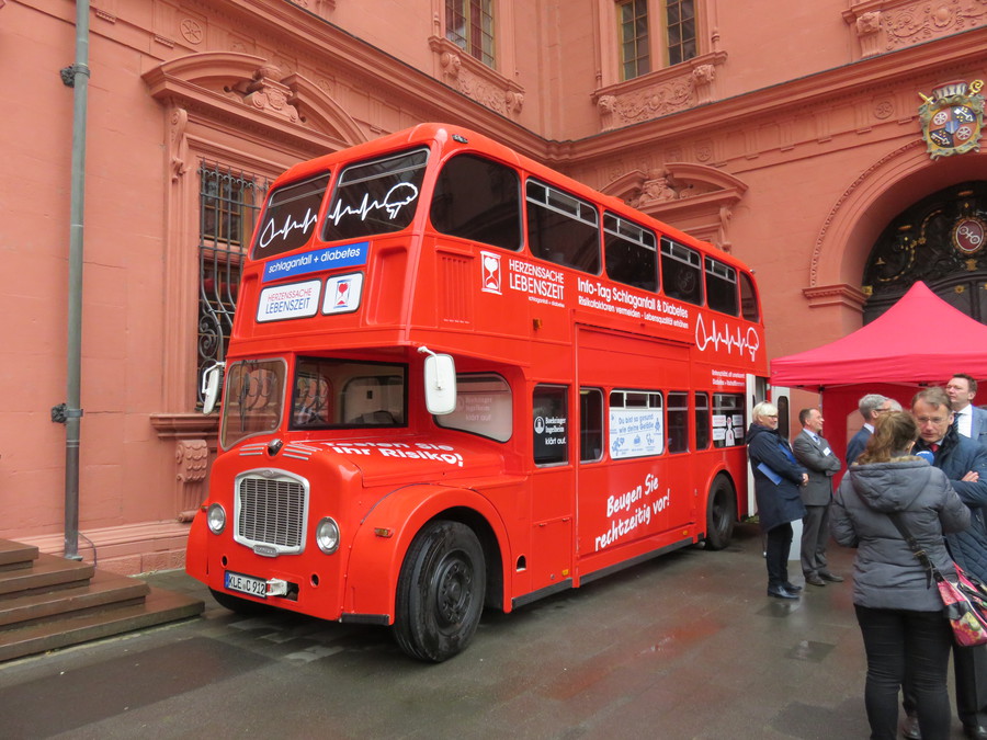 Heute startet in Mainz die Aufklärungsinitiative „Herzenssache Lebenszeit – Schlaganfall und Diabetes“. Bis September werden 80 Städte per Doppeldecker-Infobus angesteuert: von Garmisch bis Rostock, von Mönchengladbach bis Dresden. Schirmherr ist der emeritierte Bischof von Mainz Karl Kardinal Lehmann, der gleich zu Beginn für umfassende Information und Aufklärung plädierte, denn: „Alles wird schlimmer, wenn man seinen Ängsten nachgibt“.