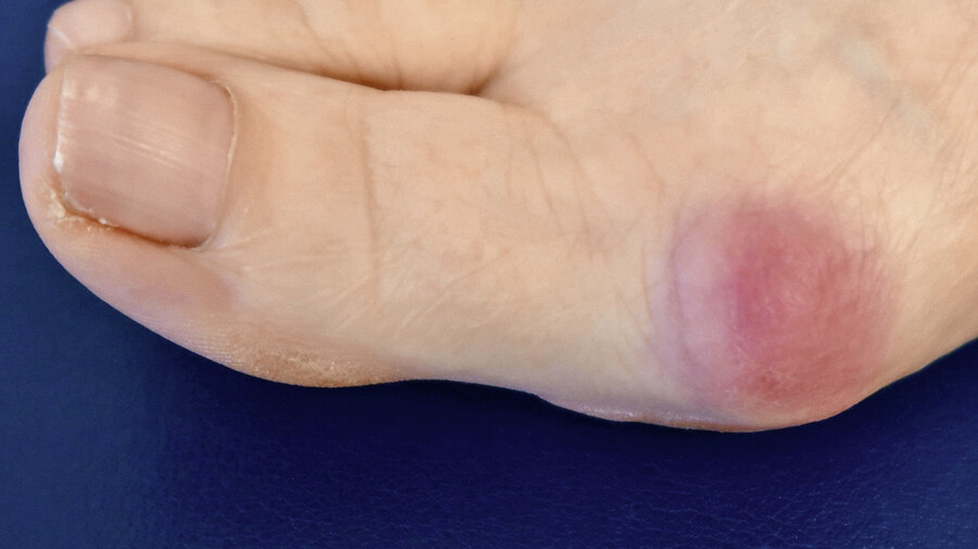 Bei vermehrter Beschwielung und palpablen Osteophyten am dorsalen Großzehengrundgelenk mit Bewegungseinschränkung kann eine Arthrose des Großzehengrundgelenkes vorliegen - genannt Hallux rigidus.