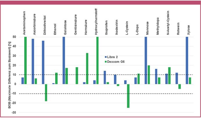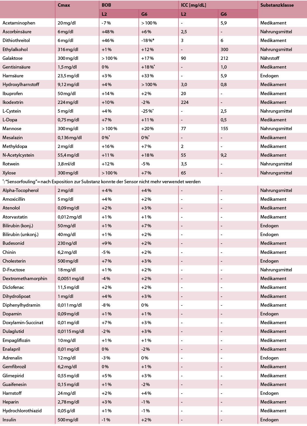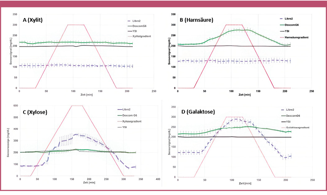 Bislang unbekannte Interferenzen kommerziell verfügbarer Glukosesensoren bei dynamischer Interferenztestung im Labor