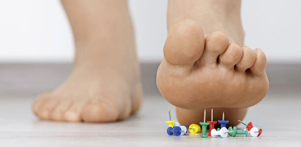 - Neuropathische Symptome in den Extremitäten (vor allem in den Füßen, seltener in den Händen) wie einschießende oder stechende Schmerzen, Kribbeln, "Ameisenlaufen", Brennen, Krämpfe, Kälte- oder Taubheitsgefühl, Schmerzen bei einfacher Berührung, z. B. mit der Bettdecke.