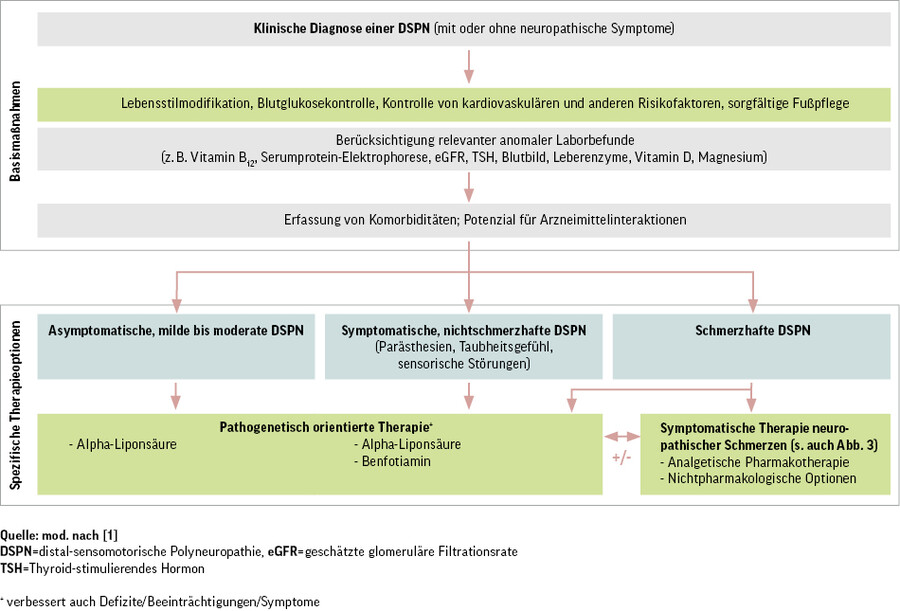 - symptomatische Pharmakotherapie im Falle einer schmerzhaften DSPN [1] (Abb. 2).