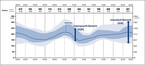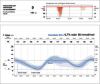 - Der breitere, hier hellblau gefärbte Bereich ist der Interdezil-Bereich (IDR), der von der 10. und 90. Perzentile begrenzt wird. Darin liegen 80 Prozent der Messwerte.