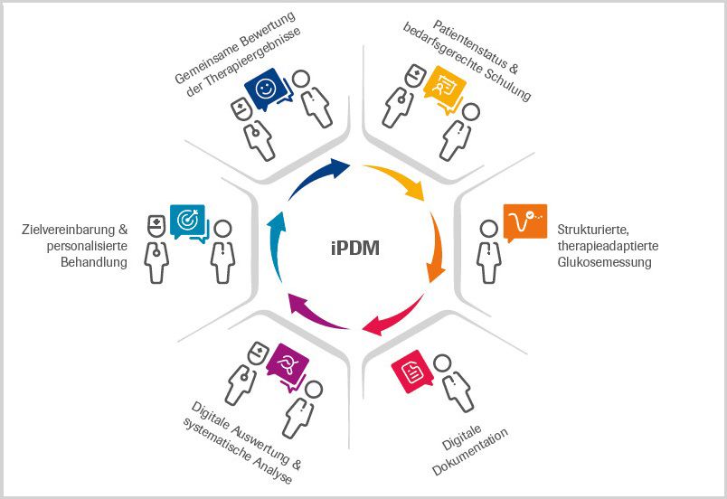 Digitale Tools bilden die Infrastruktur, die ein solches Versorgungsnetzwerk benötigt. Sie müssten allerdings in dazu passende, strukturierte Prozesse eingebettet werden, um wirksam zu sein, erklärte Kalfhaus. Ein Beispiel hierfür ist das integrierte Personalisierte Diabetes Management (iPDM) – ein strukturierter, digital unterstützter Prozess, der es ermöglicht, effizientere Therapieentscheidungen zu treffen und dadurch individuelle Therapieziele besser zu erreichen.