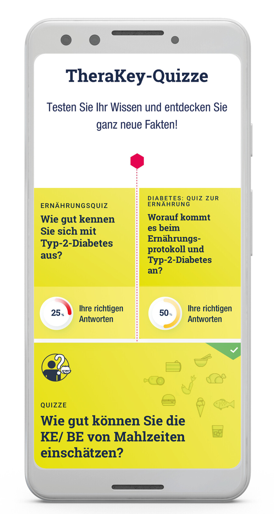 TheraKey® ist mehr als ein reines Informationsportal: Um die Therapietreue nachhaltig zu fördern, werden die Patienten*innen interaktiv eingebunden. So animieren einfache und abwechslungsreiche Aufgaben die Nutzer*innen, das Portal zu erkunden und neue Inhalte zu entdecken. Fortschrittsanzeigen und persönliches Feedback motivieren zum Weitermachen. Im Quiz können Patienten*innen spielerisch ihr erworbenes Wissen testen. Die angepasste Darstellung für Tablets und Smartphones macht TheraKey® von überall aus nutzbar.