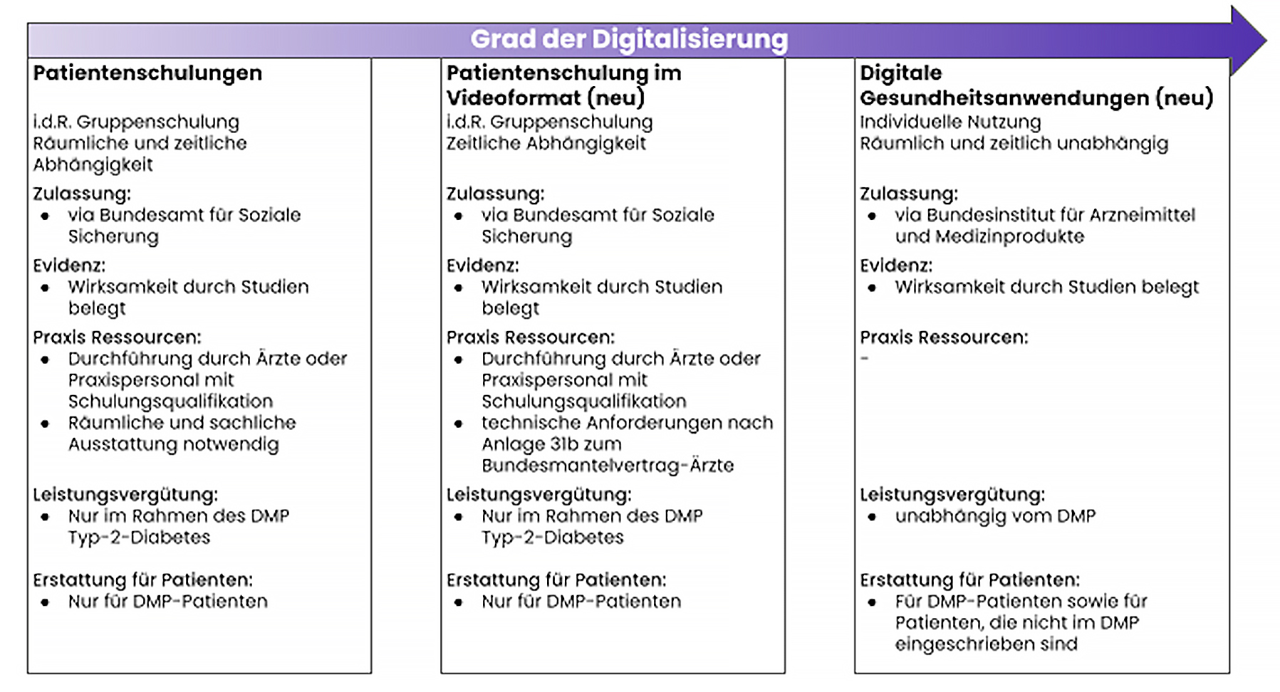 Es lohnt sich mehr denn je, sich wieder verstärkt der nicht-medikamentösen Therapie in der Praxis zu widmen. Am 9. März 2024 ist der Beschluss des G-BA in Kraft getreten, der es ermöglicht, ab sofort Schulungen ganz oder teilweise im Videoformat umzusetzen. Die Erbringung der Schulungen erfolgte bisher, im Rahmen des Disease-Management-Programms (DMP), vor Ort in den Räumlichkeiten der schulenden Praxis zu einem festgelegten Termin. Mit dem Beschluss des G-BA entfällt nun erstmals die räumliche Abhängigkeit, wodurch der Zugang zu den Schulungsangeboten erleichtert und die Schulungsrate erheblich verbessert werden kann. Nur einen Monat später, am 12. April 2024, wurde zusätzlich zur räumlichen Dimension auch die zeitliche Dimension gesprengt. Das Bundesinstitut für Arzneimittel und Medizinprodukte hat erstmals in Deutschland den medizinischen Nutzen (Senkung HbA1c) einer digitalen Gesundheitsanwendung (DiGA) für ein verbessertes Diabetesmanagement anerkannt. Dies ermöglicht eine asynchrone Basistherapie für alle Typ-2-Diabetes-Patienten, denn die DiGA Vitadio kann unabhängig von Raum und Zeit genutzt werden Des Weiteren wird die digitale Basistherapie vollumfänglich von den gesetzlichen Krankenkassen erstattet, auch unabhängig davon, ob der Patient in ein DMP eingeschrieben ist oder nicht und ist eine wichtige Ergänzung zu den Schulungsmaßnahmen.