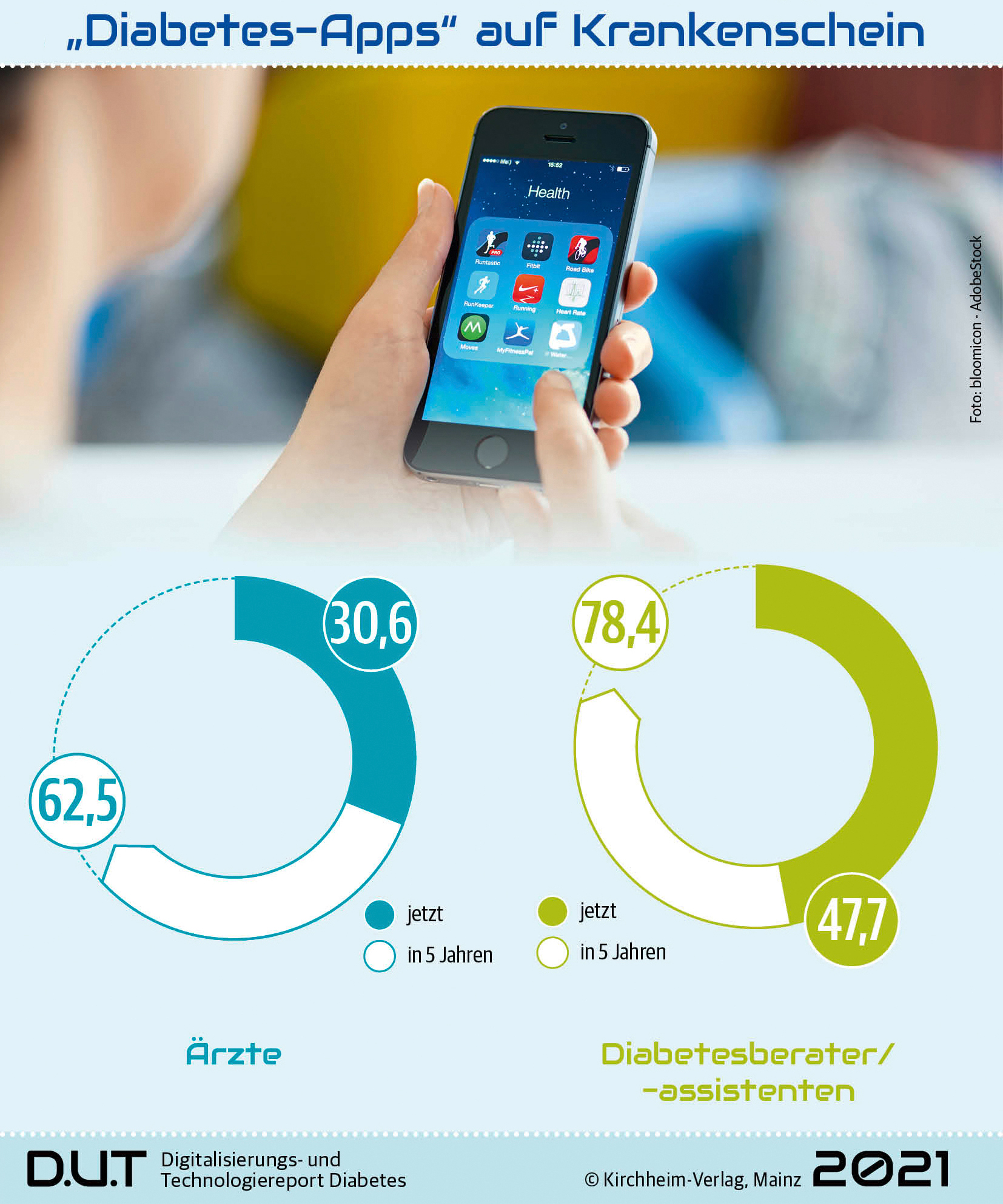 Fast jeder nutzt sie: Apps. Auch für Menschen mit Diabetes gibt es viele spezielle Apps, mit denen sich zum Beispiel die Glukosewerte dokumentieren lassen. Wie schätzen diabetologisch tätige Ärzte und Diabetesberater/-assistenten die Bedeutung von Diabetes-Apps ein? Antworten auf diese Frage gibt eine 2020 für den Digitalisierungs- und Technologiereport Diabetes 2021 durchgeführte Umfrage unter fast 350 diabetologisch tätigen Ärzten und über 570 Diabetesberatern und Diabetesassistenten.