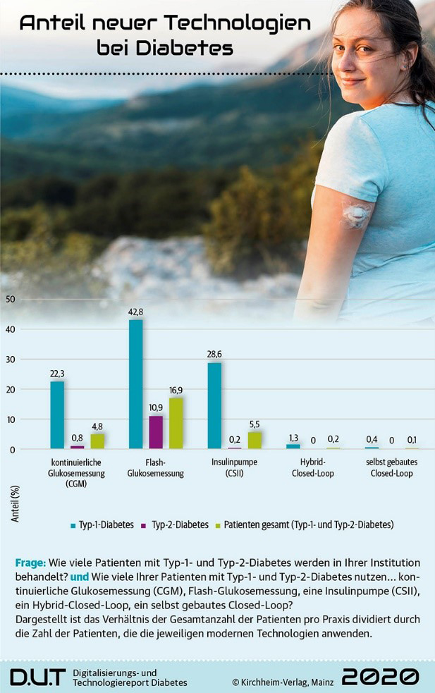 Diese Zahlen erlauben eine vorsichtige Hochrechnung, wie viele Diabetespatienten in Deutschland (aktuell: ca. 360.000 Menschen mit Typ-1-Diabetes, ca. 6,9 Millionen Menschen mit Typ-2-Diabetes) moderne Diabetestechnologie nutzen: Flash-Glukosemessung ca 370.000 Menschen, kontinuierliche Glukosemessung (CGM) ca. 96.000, Insulinpumpen ca. 104.000, Hybrid-Closed-Loop ca. 4.500, Closed-Loop ca. 1.440.
