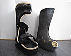 Im Selbstversuch war die korrekte Anwendung nicht ohne Probleme: zeitaufwendig, umständlich, unsicher, es waren viele unterschiedliche Einzelteile. Sohle, seitliche Metallstangen, Schaumstoffpolster, zwei aufblasbare Luftkammern, vier Befestigungsbandagen, zwei lose Plastikverstärkungen. Nach telefonischer Auskunft der Firma gibt es hiermit langjährige Erfahrung aus den USA und Deutschland. 6 verschiedene Größen werden in Deutschland angeboten. Es besteht eine Reinigungsmöglichkeit der Schaumstoffpolsterung. Unklar bleibt das Vorgehen bei einer bakteriellen Kontamination, z.B. bei Wunden.