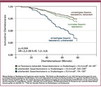 Adjustiert nach Kovariablen – Alter, vorbestehende kardiovaskuläre Erkrankung, Gewicht, Größe, Body-Mass-Index (BMI), HbA1c, Raucherstatus, Therapie mit Statinen und Angiotensin-Rezeptor-Blockern/ACE-Hemmern – verblieb bei den Patienten mit niedrigem Testosteron eine verdoppelte Wahrscheinlichkeit, früher zu versterben.