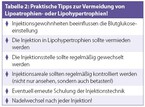 Ob dies nach einem Rotationssystem erfolgt oder einem bewussten ständigen Wechsel der Hautstellen ohne Verhärtungen (zum Beispiel Flanke, Gesäß, Oberschenkel Außenfläche) je nach Insulin, ist eigentlich egal (Tab. 2).