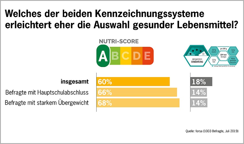 In der Umfrage sprachen sich vor allem jene Bevölkerungsgruppen für den Nutri-Score aus, die besonders stark von Fehlernährung betroffen sind. Die Befragten mit geringem formalem Bildungsgrad und jene mit starkem Übergewicht bevorzugten jeweils zu drei Vierteln den Nutri-Score. Beide Gruppen bewerteten den Nutri-Score auch häufiger als hilfreicher bei der Auswahl gesunder Produkte.