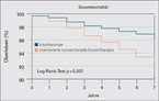 Die Hazard Ratio für Tod durch kardiovaskuläre Erkrankungen allgemein – hier waren neben Herzkrankheiten auch Schlaganfälle eingeschlossen – lag bei 0,58. Die Gesamtmortalität war mit einer Hazard Ratio von 0,73 ebenfalls bei den Patienten mit einer Insulinpumpentherapie niedriger als bei den Patienten mit einer ICT.
