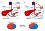 Eine Reduktion des hepatischen Insulin/Glukagon-Quotienten bedingt eine Entkopplung der hepatischen Glukosefreisetzung (2), welche insbesondere mit postprandialen Hyperglykämien einhergeht. Demgegenüber bedingt der Verlust des peripher/hepatischen Insulingradienten eine verstärkte periphere Glukoseutilisation, welche insbesondere mit einem Anstieg des Hypoglykämierisikos während der Nacht in Verbindung gebracht wird (1).