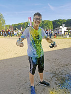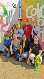 Nach dem Sport und Abendessen stand die sogenannte „Holi-Powder“ Aktion an. Dafür hat jeder ein weißes Camp D-T-Shirt, einen Mundschutz und das farbige Pulver bekommen. Alle Teilnehmer haben sich in einem großen Kreis zusammen gestellt und passend zu dem Motto „Colour your life“ gleichzeitig das farbige Pulver in die Luft geworfen. Danach waren die T-Shirts nicht mehr weiß, sondern kunterbunt.