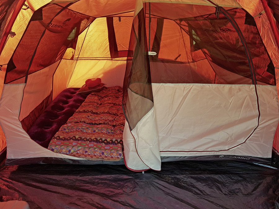 Im Anschluss folgte die Begrüßung der Teilnehmer im großen Gemeinschaftszelt, sowie das gemeinschaftliche Abendessen. Der restliche Abend war „Freizeit“ in der sich die Teilnehmer kennen lernen konnten. In dieser Freizeit war besonders das Sternzelt mit Elektrokamin beliebt. Darunter standen „chillige“ Stühle und Luftmatratzen mit Decken für die kälteren Abendstunden, perfekt für den Austausch und ausgiebige Gespräche. Ein besonderes Highlight war der Musiker, der dort abends mit der Gitarre gespielt und gesungen hat.