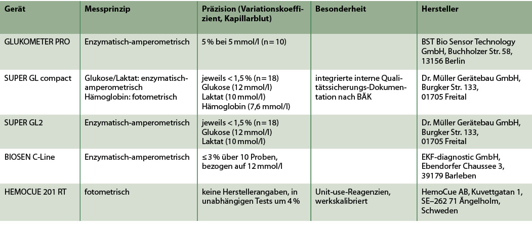 Dabei soll auch die Messgüte von POCT-Systemen durch die Teilnahme an einer externen und internen – so die Empfehlung – Qualitätssicherung entsprechend den Vorgaben der neuesten Version der Richtlinien der Bundesärztekammer fortwährend gesichert werden [Bundesärztekammer 2023]. Weiterhin sollen diese Systeme für diesen Einsatzzweck zugelassen sein, d. h. es soll eine entsprechende Zweckbestimmung für diese Systeme vorliegen. Blutgasanalysatoren oder Systeme für die Patientenselbstmessung weisen üblicherweise keine Zweckbestimmung "zur Diagnose" auf, wobei diverse solcher Geräte an Ringversuchen teilnehmen und in der Praxis für die Verlaufskontrolle eingesetzt werden. In Bezug auf die Messgüte sind einige dieser Systeme durchaus vergleichbar mit den für die Diagnostik verwendeten Systemen zur Glukosemessung.
