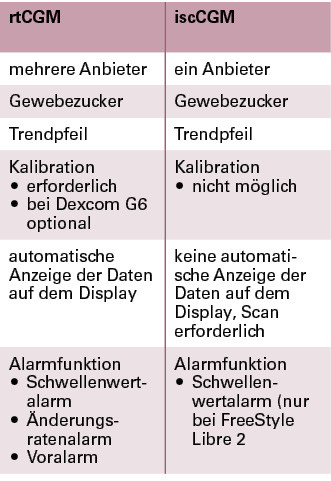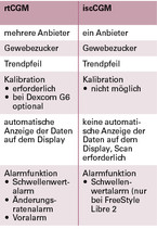 Hinsichtlich Schulung bestehen dagegen viele Gemeinsamkeiten der rtCGM- und iscCGM-Systeme. Die unterschiedliche Bereitstellung der Glukoseinformation macht am Ende keinen Unterschied im Schulungsaufwand. Die Anwender müssen sowohl bei rtCGM- als auch bei iscCGM-Systemen prinzipiell ein Verständnis für die Interpretation von Gewebeglukose entwickeln, ebenso den Umgang mit der Glukosekurve verstehen und den Trendpfeil deuten können.