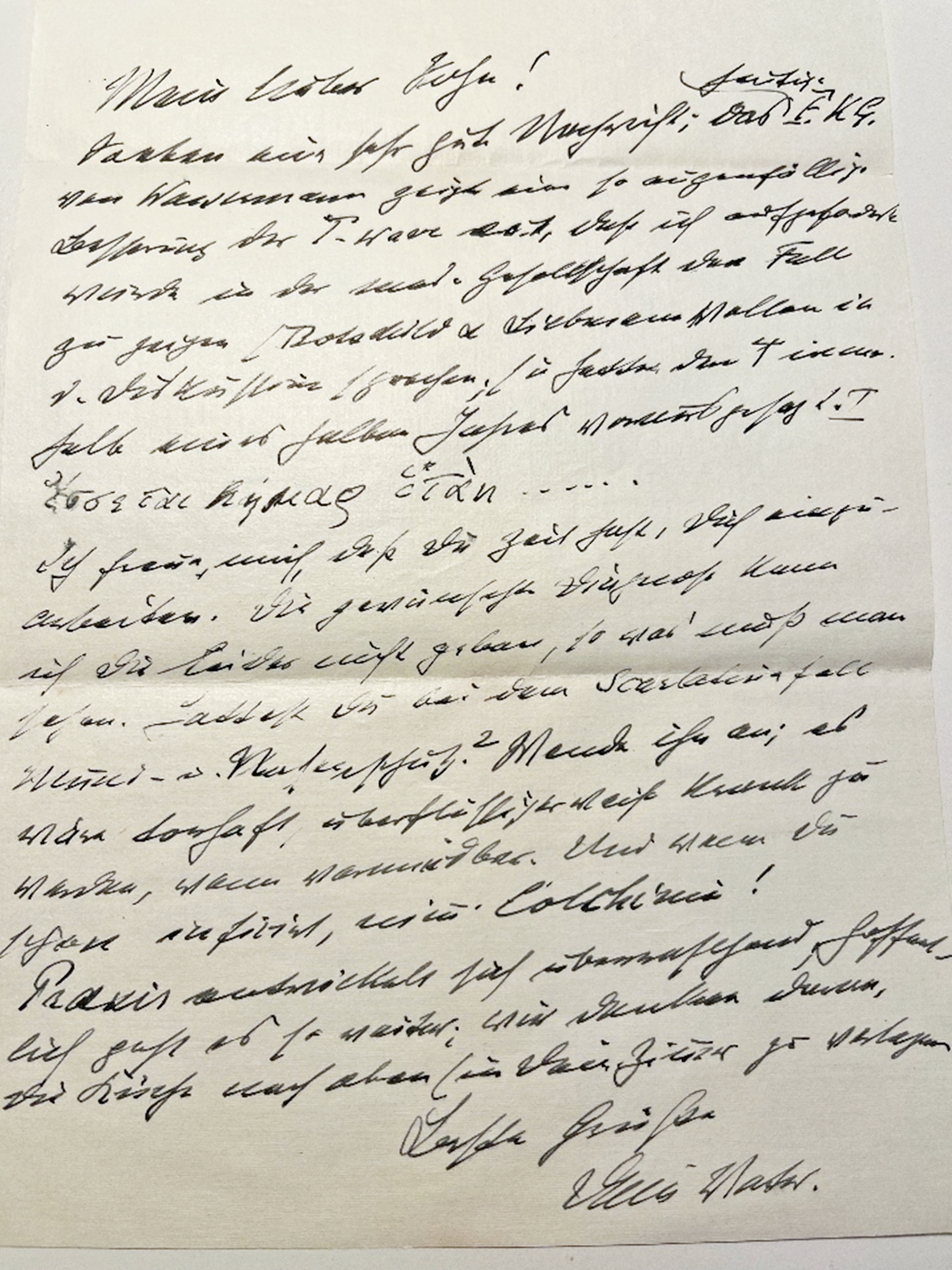 Zülzer erkannte früh, welche Bedrohungen durch die Herrschaft der Nationalsozialisten für ihn und andere entstehen würden. Daher entschied er sich bereits 1934 in die USA auszuwandern. Über sein dortiges Leben war bisher nur wenig bekannt. Erst 2023 erschien eine Arbeit über die Familiengeschichte der Zülzers [Bloch 2023]. Weitere Informationen lieferte jetzt Zülzers Korrespondenz. Seine Enkelin Barbara Kusko fand im Nachlass ihres Vaters, des Pädiaters Wolf Zülzer, Briefe, welche dieser in der Zeit von 1935 bis 1946 von seinem Vater erhielt. Die äußerst schwer lesbare Handschrift der in Sütterlin verfassten Briefe konnte niemand in der Familie entziffern. Frau Kusko hörte von einem Interview mit einem der Autoren (VJ) auf BBC-International, in dem die Arbeiten ihres Großvaters über Insulin gewürdigt wurden. Sie bat ihn darum, sich der Briefe anzunehmen und für eine Aufbewahrung in Berlin zu sorgen. FWK transkribierte die Briefe. Die Originalien wurden 2025 im Jüdischen Museum in Berlin archiviert (Abbbildung 2).