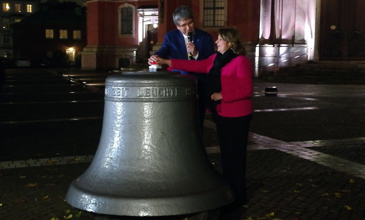Nach dem Startschuss für die feierliche Illumination vor rund 200 Zuschauern und einem Orgelkonzert im Michel begrüßte Hamburgs Gesundheitssenatorin Cornelia Prüfer-Storcks rund 120 Teilnehmer in der Krypta der Kirche, wo im Anschluss im Rahmen einer geschlossenen Veranstaltung eine Podiumsdiskussion stattfand.