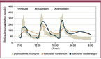 Ein weiteres Problem der kurzen Halbwertszeit ist in einem zu frühen Abklingen der Wirkung mit dem Auftreten von Basalinsulinlücken zu sehen (Abbildung 3). NPH-Insuline unterliegen einer erheblichen Absorptionsvariabilität, die selbst bei ordnungsgemäßer Anwendung beim einzelnen Patienten über 60 % betragen kann (6). NPH-Insuline liegen in einer Suspension vor. Vor Injektion des Insulins muss die Ampulle bzw. der Pen mindestens 20-mal hin- und hergeschwenkt werden, um eine gleichmäßige Suspension des Insulins mit dem NPH zu gewährleisten. Geschieht dies nicht, muss mit einer erheblich höheren Absorptionsvariabilität gerechnet werden. Eine Einschätzung der zu erwartenden Insulinwirkung wird in diesem Fall praktisch unmöglich.