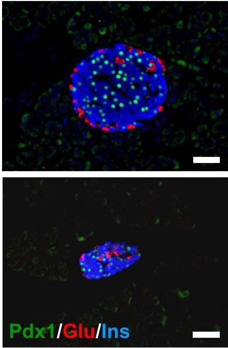Dazu untersuchten sie die endokrinen Vorläuferzellen, bei denen das Pdx1 Gen normal vorlag, die aber ebenfalls ohne exokrine Zellen in der Nachbarschaft aufwuchsen. Diese Zellen waren ebenso anfällig und zeigten schlechte Überlebensraten.
