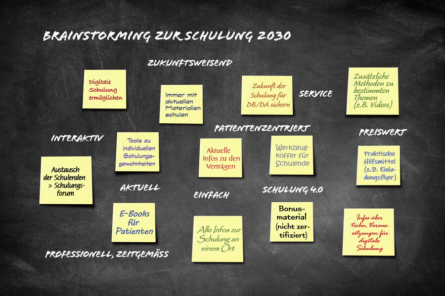 Die Situation der Diabetesschulung ist symptomatisch für viele Bereich unsere Gesellschaft. Angesichts einer vermeintlich komfortablen Situation nimmt der Veränderungsdruck ab und Innovationen unterbleiben. In der Wirtschaft nennt man die Analyse der Stärken und Schwächen, aktueller und zukünftiger Herausforderungen "Potentialanalyse", die Optionen für die Zukunft "Zukunftsoptionsanalyse". Eine solche haben wir von FIDAM, als Anbieter von modernen Schulungsprogrammen und der Kirchheim-Verlag, als führender Verlag für Diabetes-Schulungsprogramme, gemeinsam gemacht. In einem Brainstorming haben wir zusammen überlegt, wie die Schulung 2030 aussehen könnte.