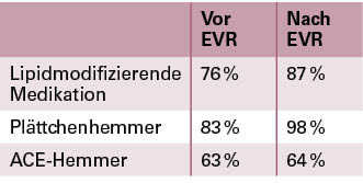 Zwar konnte jüngst durch eine Datenanalyse des RECCORD-Registers eine deutlich bessere Versorgung der pAVK-Patienten nach einer endovaskulären Revaskularisation mittels sekundärpräventiven Medikamenten dargelegt werden (Tab. 1, [Stella 2022]), allerdings müssen sich solche Therapieregime auch in die Langzeit-Präventionsstrategien übersetzen, durch die nicht nur die Patienten profitieren, sondern auch unter sozioökonomischen Gesichtspunkten das Gesundheitssystem durch weniger Behandlungsnotwendigkeiten im ambulanten wie stationären Sektor entlastet wird. Denn eine Reduktion von kardiovaskulären Ereignissen durch eine suffiziente Sekundärprävention wirkt nachhaltig.