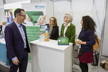 Am Samstag glänzte der VDBD-Stand durch den Besuch von Cem Özdemir, Bundesminister für Ernährung und Landwirtschaft. Özdemir war eigens aus Berlin angereist, um auf dem Symposium der Deutschen Allianz Nichtübertragbare Krankheiten (DANK) zum Thema "Kinderschutz in der Lebensmittelwerbung: Wird Deutschland vom Schlusslicht zum Vorreiter?" die Pläne seines Ministeriums vorzustellen. Prof. Emma Boyland von der Universität Liverpool präsentierte das überraschende Ergebnis einer internationalen Studie, wonach Deutschland in puncto Fernsehwerbung für Lebensmittel, die sich an Kinder richtet, globaler Spitzenreiter ist. Diese unrühmliche Führungsposition noch vor den USA oder China sowie die Vorträge von Özdemir und Boyland sorgten für eine spannende Diskussion, an der sich auch unsere VDBD-Geschäftsführerin Dr. Gottlobe Fabisch aktiv beteiligte. Im Anschluss an das Symposium suchte der Bundesminister unter anderem gezielt den VDBD-Stand auf, um mit uns über unsere Beteiligung am Kinderschutz in der Lebensmittelwerbung und das Tätigkeitsfeld von Diabetesberaterinnen und Diabetesberatern zu sprechen. Diese persönliche Begegnung unterstreicht die Bedeutung des VDBD innerhalb von DANK und bestätigt unser langjähriges Engagement gemeinsam mit unseren Kooperationspartnern für Prävention und die Gesundheit unserer Kinder.