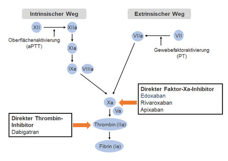 Gerinnungskaskade: Verfügbare Nicht-VKA-orale Antikoagulanzien (NOAK).