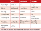 Die Tabelle 1 versteht sich als Leitfaden zur klinischen Diagnostik der Vaginalatrophie der eine Einordnung der Schwere der Vaginalatrophie auch für den Nicht-Gynäkologen erlaubt. Dabei hat sich der Vaginale Maturationsindex (VMI) als Standard Score in der zytologischen Diagnostik einer Vaginalatrophie bewährt. Der VMI beschreibt das relative Verhältnis von Parabasal- und Intermediärzellen zu den superfiziellen Zellen des Vaginalepithels. Ein Anteil von > 15 % ans Superfizialzellen wird als physiologischer Befund erklärt. Bei postmenopausalen Zellen zeigt sich der Wert unter 5 %.