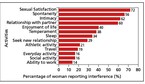 Die Abbildung 2 aus diesem Survey macht deutlich, welchen gravierenden Einfluss die Vulvovaginale Atrophie auf die Partnerschaft und auf das Sexualleben der peri- und postmenopausalen Frau ausübt. Aber es bleiben selbst der Schlaf, der Sport, das Reisen und die Suche nach einem neuen Partner nicht unberücksichtigt. Und besonders gravierend: 40 % der Frauen gaben an dass die Beschwerden der Vulvovaginalen Atrophie ihre Lebensfreude deutlich einschränken.