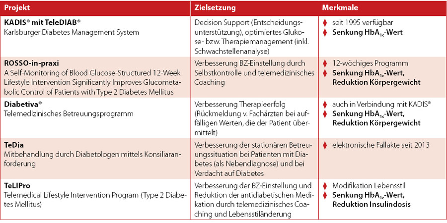 In der Diabetologie gibt es KADIS® zur Unterstützung der Entscheidungsfindung (Decision Support), basierend auf Identifikationsmodul (Alter, Geschlecht, Diabetestyp), Bewertungsmodul (72 Stunden-CGM zur Schwachstellenanalyse) und Vorhersagemodul (Mahlzeiten, Sport, Medikation). Andere Konzepte setzen beim Tele-Coaching an. HbA1c-Senkung und Gewichtsreduktion konnten bestätigt werden.