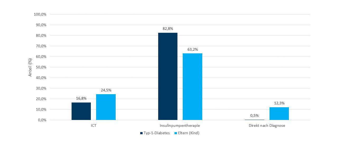 Für Eltern von Kindern mit Typ-1-Diabetes und Erwachsene mit Typ-1-Diabetes sind vor allem der Dokumentationsaufwand (Eltern 45%/erwachsene Personen mit Typ-1-Diabetes 54%) und die Kostenerstattung (45%/39%) durch die Krankenkasse bedeutsame Hindernisse für den Antrag auf eine Pumpentherapie.