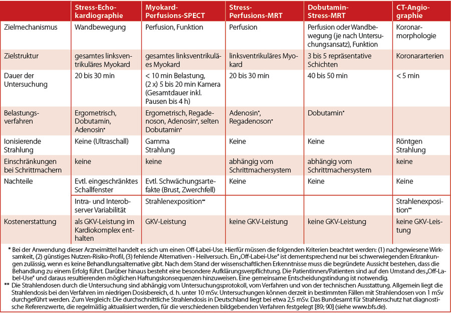 In den Leitlinien ist es dabei zu einer Abwertung des Stellenwertes des Belastungs-EKGs gekommen. Bildgebende Belastungstests (Echokardiografie, SPECT, MRT, PET) werden favorisiert und sollten, falls verfügbar, als initiale Tests erfolgen (Klasse I-Empfehlung), insbesondere bei einer Einschränkung der LV-Funktion. Hierbei sollte den physiologischen Belastungen Vorrang vor den pharmakologischen Belastungen eingeräumt werden.