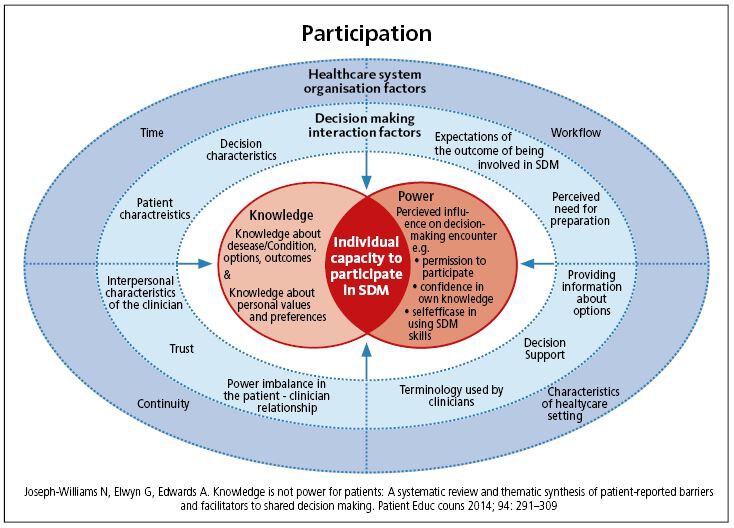 - Es gibt Hinweise, dass sich Menschen, die sich eher eine passive Rolle im Entscheidungsprozess wünschen, besonders profitieren, da bei diesen Menschen die Selbstwirksamkeitserwartung geringer ist und nicht das Desinteresse im Vordergrund steht.