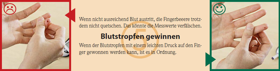 Wenn der Blutstropfen mit einem leichten Druck auf den Finger gewonnen werden kann, ist es in Ordnung.