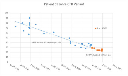 Abb. 1: Nierenfunktionsverlauf vor und nach SGLT-2-Inhibitor-Therapie.