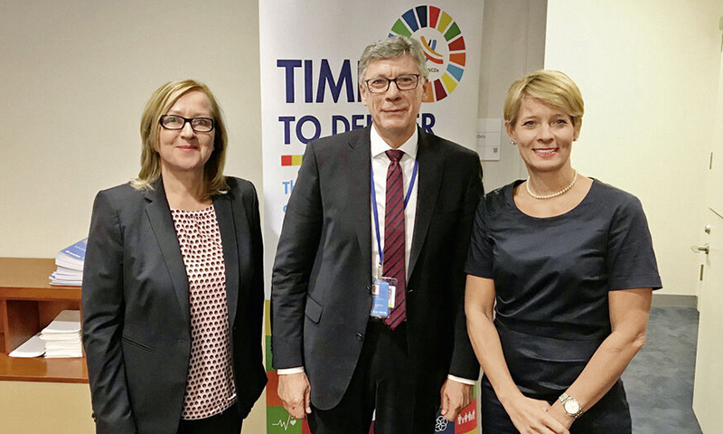 Umso mehr bestärkte der 3. UN-Gipfel die Wichtigkeit der Arbeit von DANK, um auf nationaler Ebene der Prävention von chronischen Leiden Aufwind zu verschaffen. Dr. Gottlobe Fabisch und Barbara Bitzer nutzten die Chance und konnten im Gespräch mit Lutz Stroppe, damaliger Staatssekretär im Bundesgesundheitsministerium, die Forderungen von DANK gegenüber der deutschen Politik vertreten.