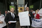 Diabetes-Verbände, Menschen mit Diabetes, ihre Behandler und Berater zogen am gestrigen Dienstag gemeinsam von der Kreuzung Reinhardtstr./Schiffbauerdamm Richtung Kanzleramt und zum Bundesministerium für Gesundheit. Dort übergab Professor Dr. med. Thomas Danne, Vorstandsvorsitzender von diabetesDE – Deutsche Diabetes-Hilfe und Chefarzt des Kinderkrankenhauses „auf der Bult“ in Hannover die 20 gesundheitspolitischen Forderungen der Kampagne an Dr. Roland Jopp, Pressereferent im Bundesgesundheitsministerium. Juliane Grützmann, Vorstand der Selbsthilfeorganisation DDH-M, übergab zudem 3 000 Patientenunterschriften, die sich gegen die jüngsten Therapieeinschränkungen durch den Gemeinsamen Bundesausschuss (G-BA) aussprachen.